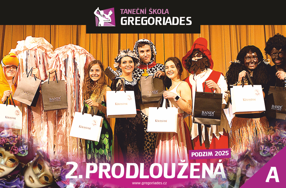 Taneční škola Gregoriades Vás zve na 2.Prodlouženou tanečního kurzu pro mládež PODZIM 2025. 2.PRODLOUŽENÁ …aneb FASHION PARTY bude probíhat ve Velkém sále Měšťanské besedy, kde Vám k tanci a poslechu budeme hrát ty nej... taneční hity. Můžete se těšit na další sólo účastníků tanečního kurzu se svými rodiči, bohatý program a vyhlášení nejlepších tanečních párů. Na tuto akci doporučujeme přijít v kostýmech nebo maskách. Během večera vybereme ty nejzajímavější. Celým večerem Vás provedou taneční mistři Nikola Gregoriades & Jana Gregoriadesová. Pozvánka pro všechny rodiče a kamarády účastníků tanečního kurzu. Fotografie z minulé taneční sezóny na www.gregoriades.cz .